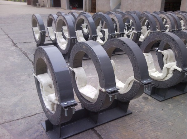 蒸汽管道隔热管托 硬质硅酸盐隔热滑动管托作为新型隔热支架架类产品,适用于温度t≤555°C的电厂、化工厂、钢厂、锅炉管道中的水平管道,隔热瓦块采用硬质硅酸盐-蛭石模具...